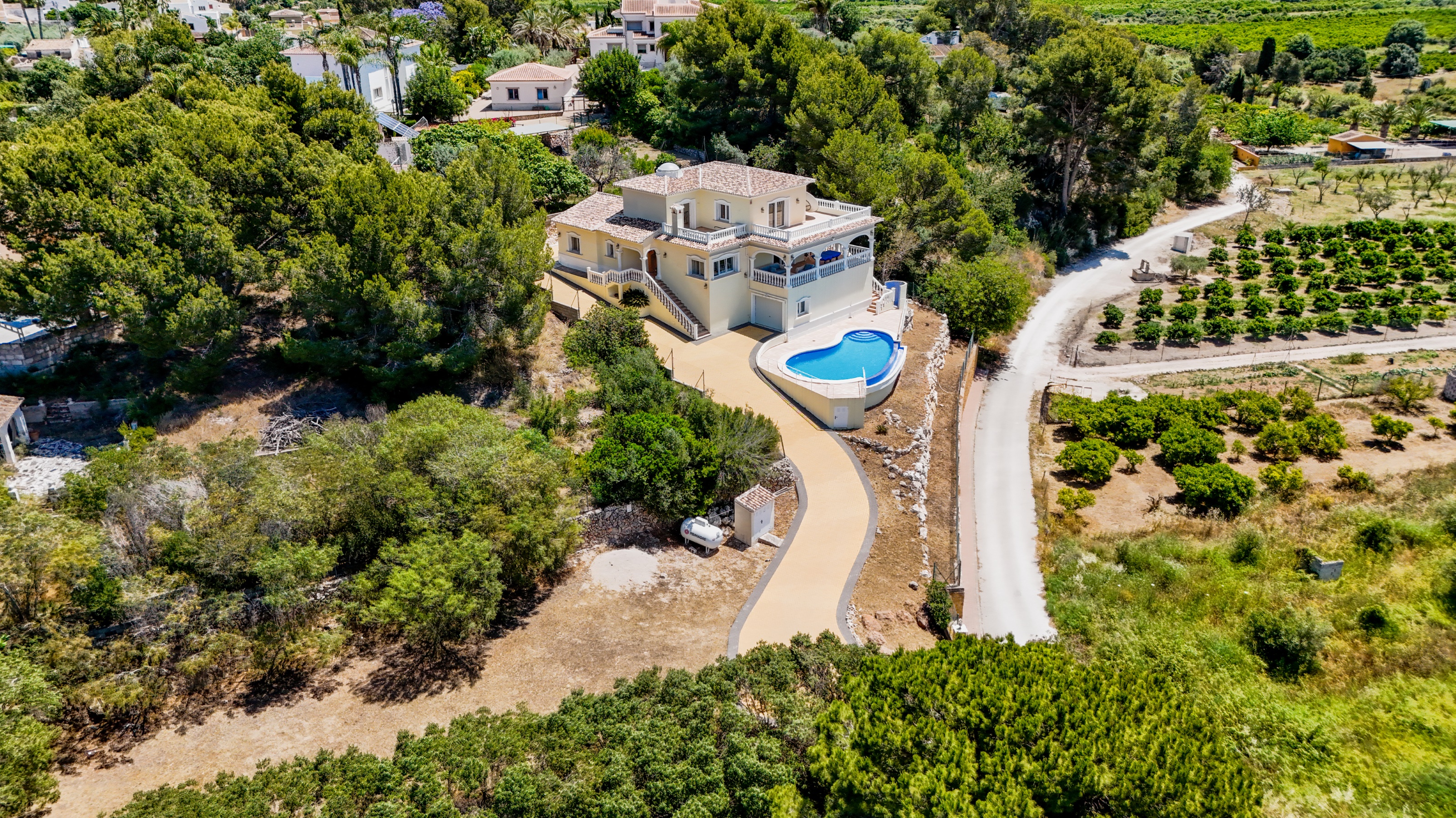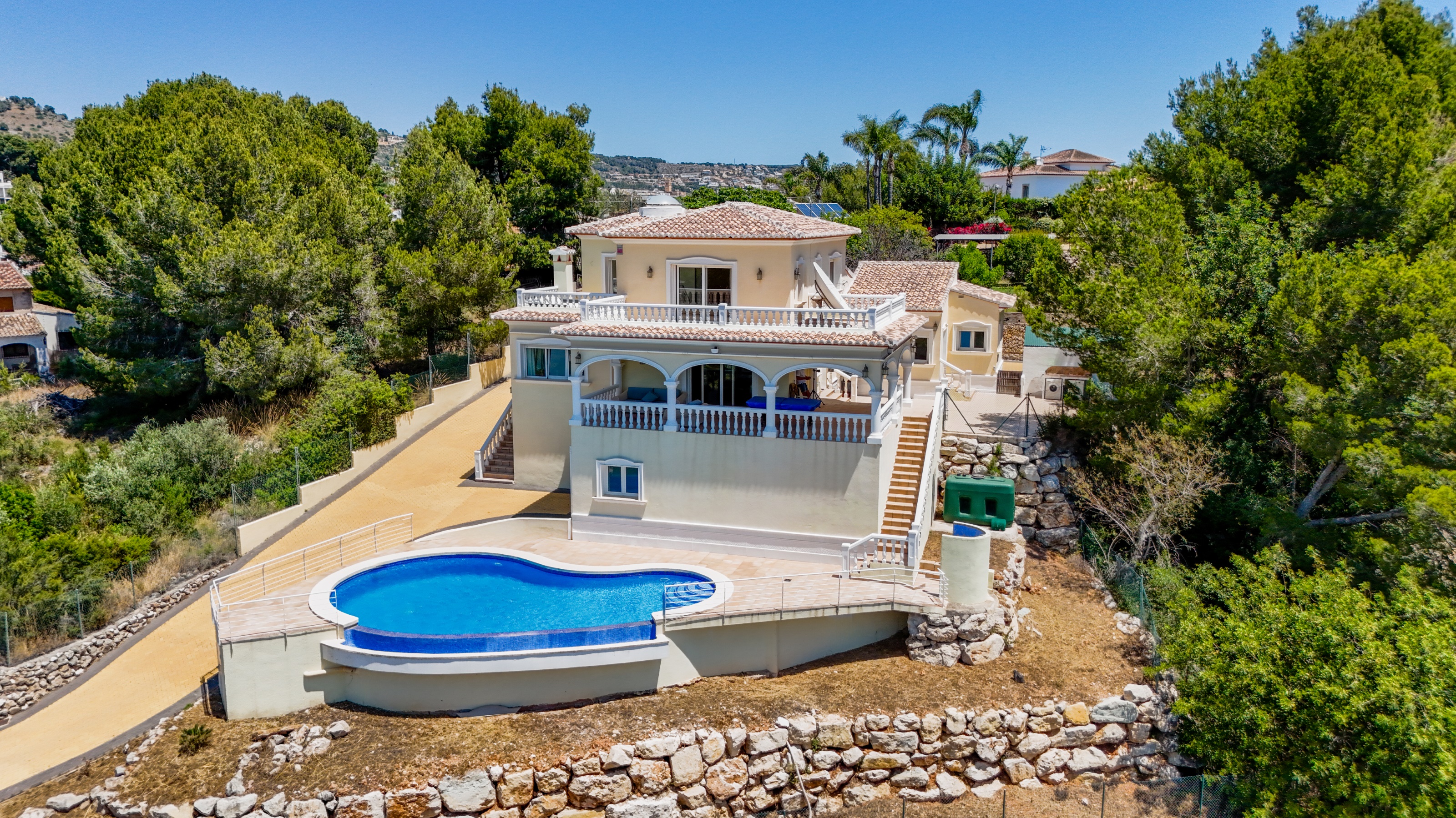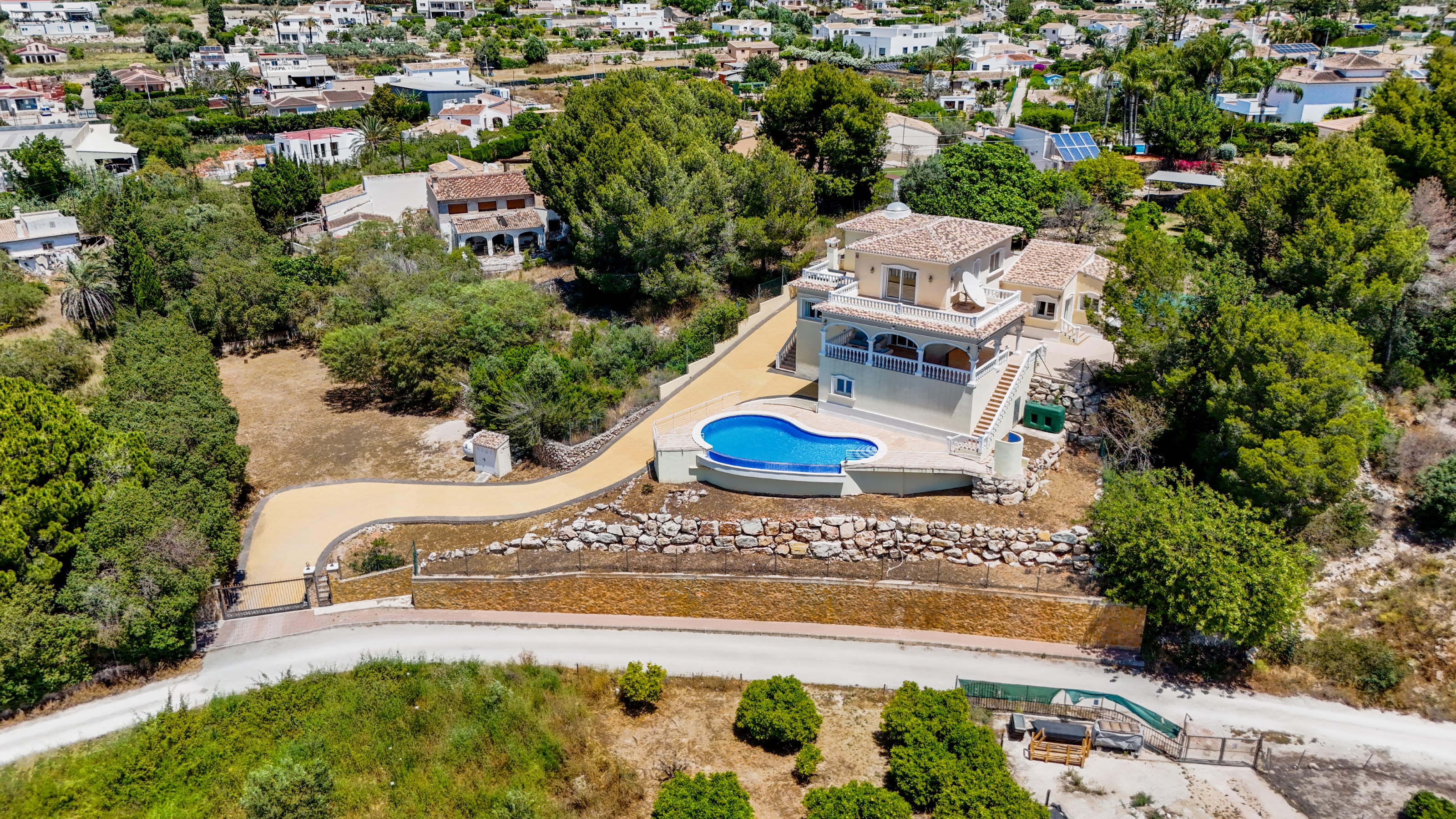 Deze charmante villa in traditionele stijl ligt op een ruim perceel van 1.800 m² in de rustige en privé wijk Senioles van Jávea, op korte afstand van de historische oude stad. Deze woning op het zuidwesten biedt vanaf alle terrassen een panoramisch uitzicht op de Montgó en de vallei en geniet de hele dag van zonlicht.