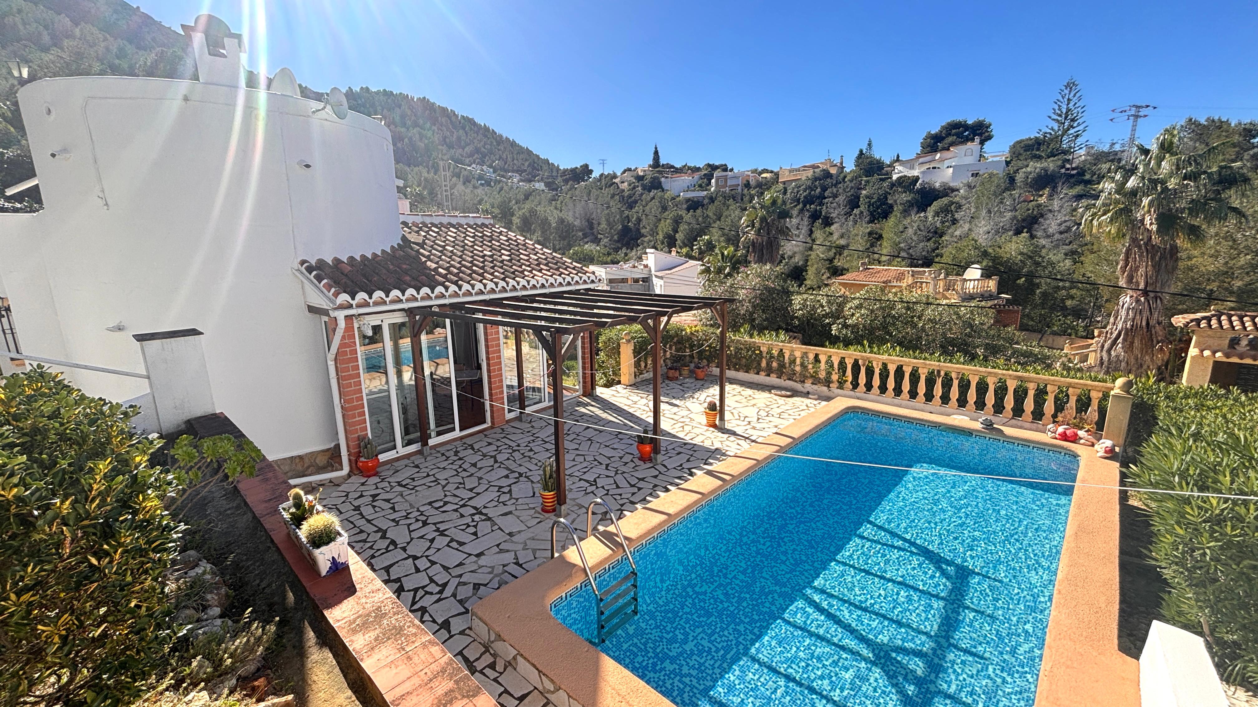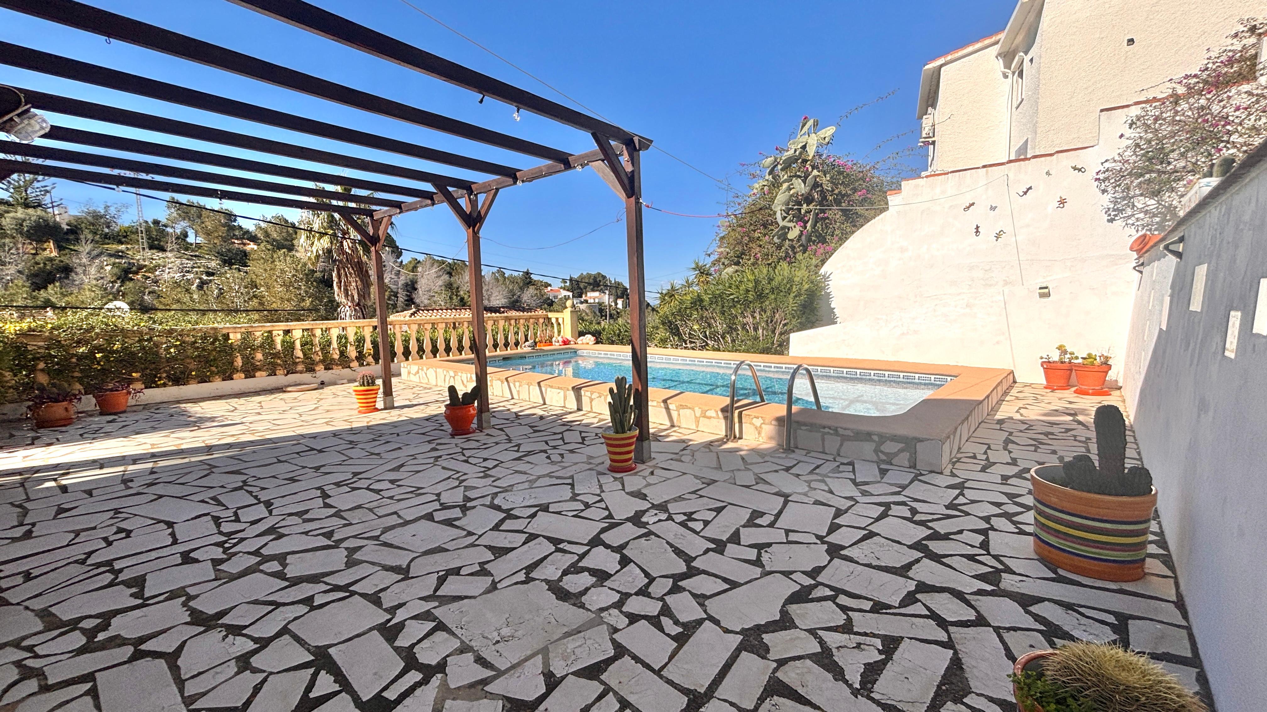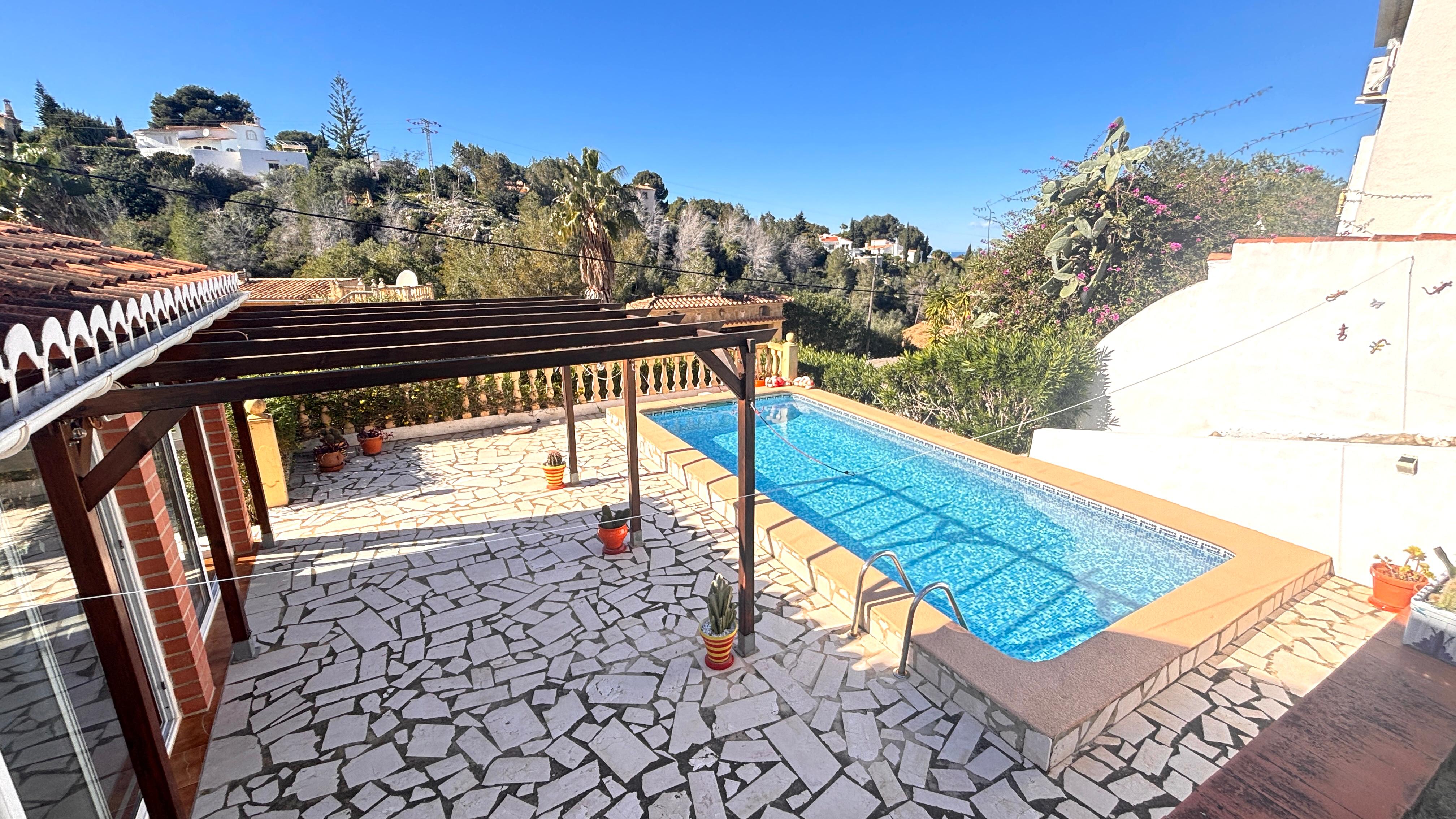 Privézwembad, ruim terras – perfect om te entertainen of te ontspannen, open uitzicht met zeezicht, goed onderhouden tuin, tuinschuur voor opslag, overdekte parkeerplaats.